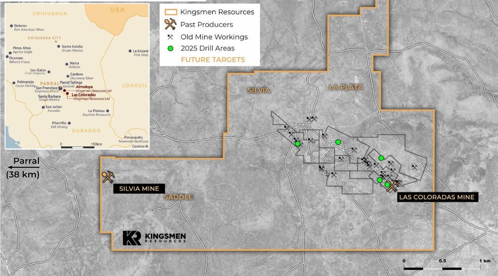 Kingsmen also controls the Almoloya Project, located nearby in the same region. Like Las Coloradas, it hosts historic silver-gold workings and has seen limited modern exploration.