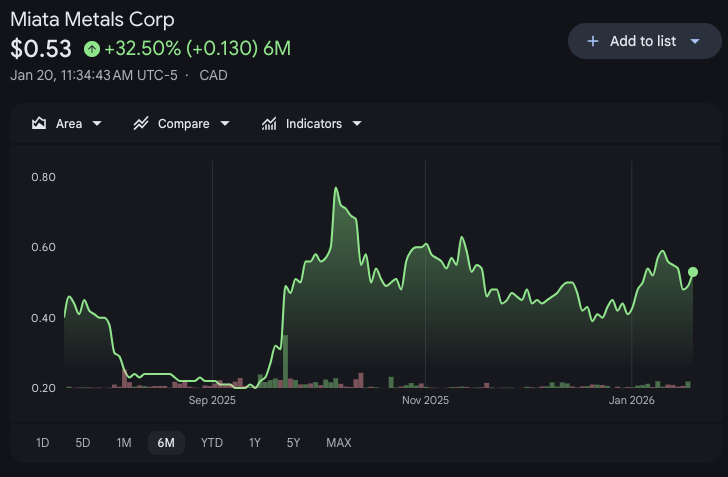 Miata Metals is still a speculative exploration story. Drill results will ultimately decide how this plays out.