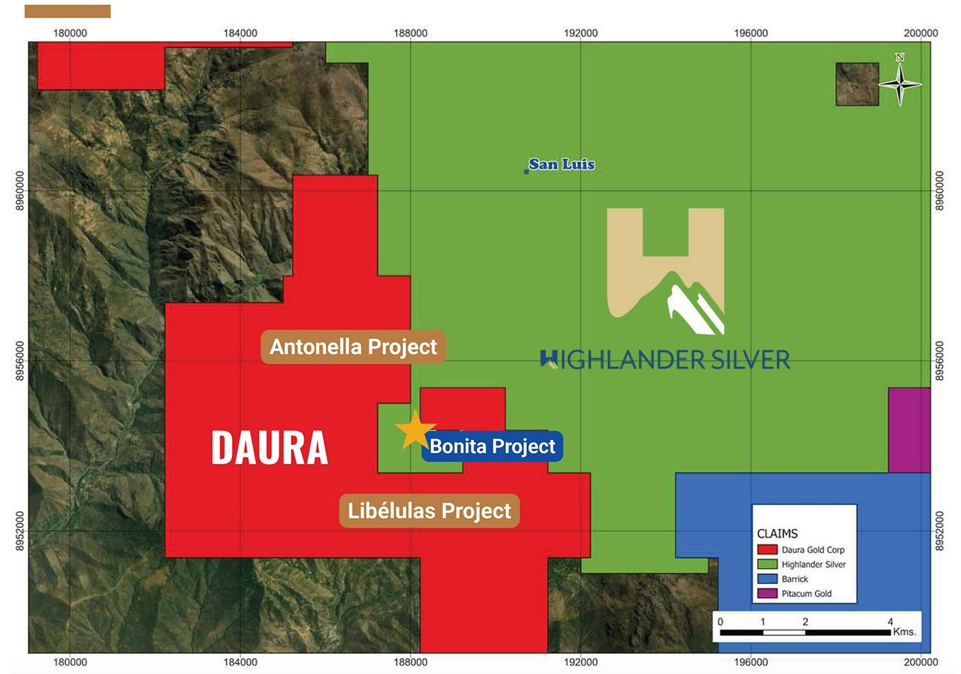 Daura is a Canadian exploration company focused on high-grade gold and silver in one of South America’s most exciting districts, Ancash, Peru and its flagship project, Antonella, sits immediately adjacent to Highlander Silver’s Bonita Project, where recent drilling has delivered thick, high-grade gold intercepts that helped propel that company’s value dramatically in recent years.