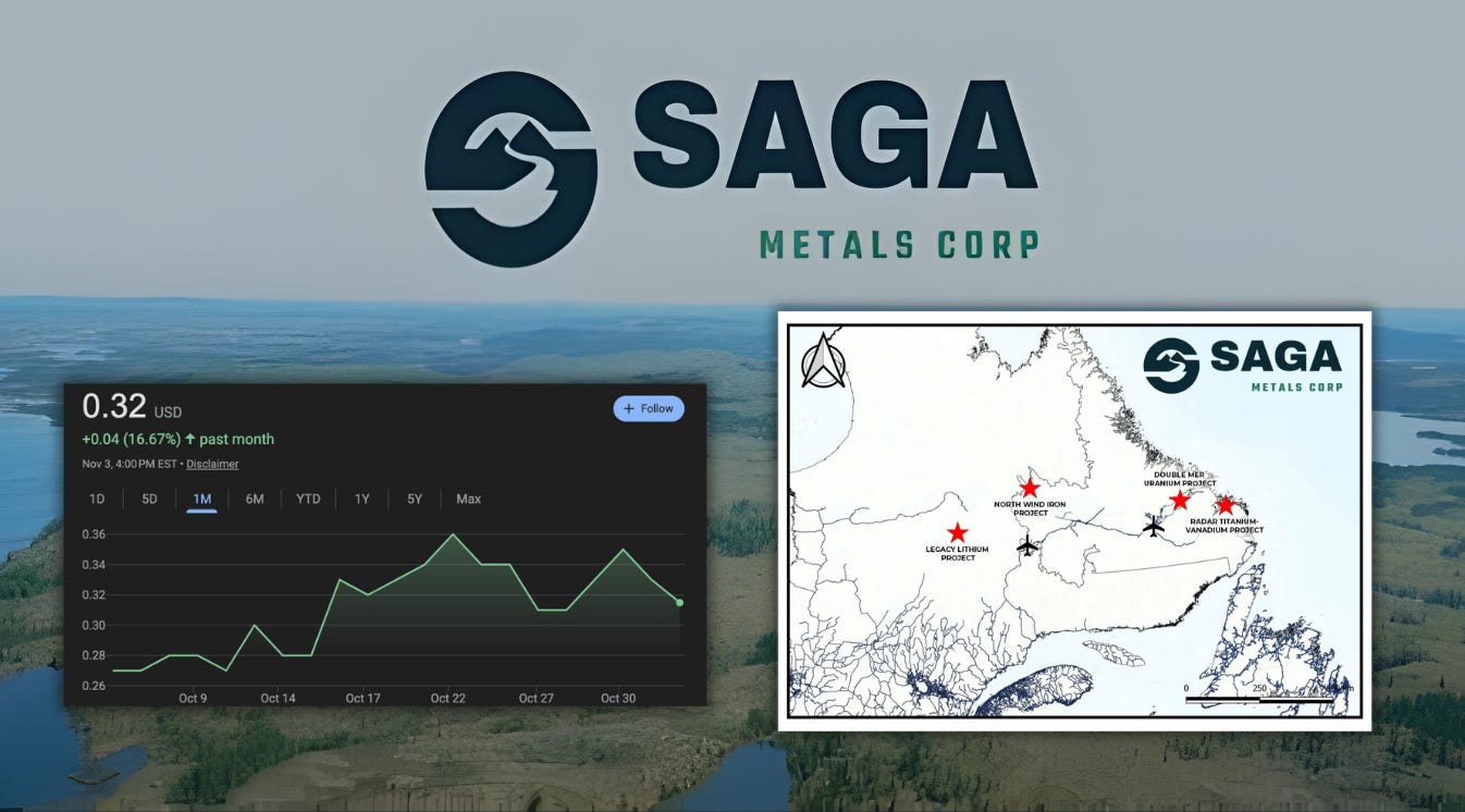 Saga isn’t another exploration hopeful chasing headlines. It’s assembling a portfolio that directly supports North American mineral independence, spanning three of the most strategic elements of the decade: titanium, lithium, and uranium.