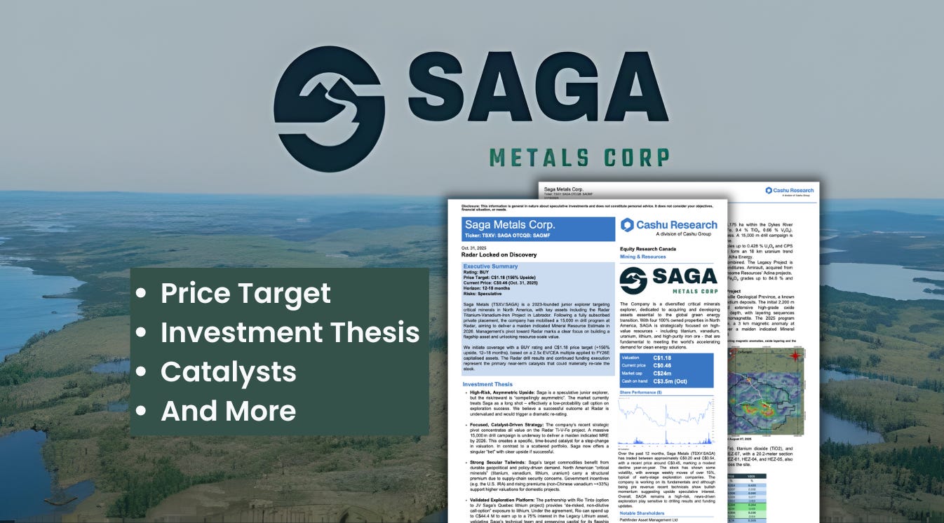 With its first large-scale drill program underway, lithium exposure through Rio Tinto, and uranium leverage as the nuclear sector surges, Saga is positioned as one of the most compelling critical-mineral stories on the TSX-V.