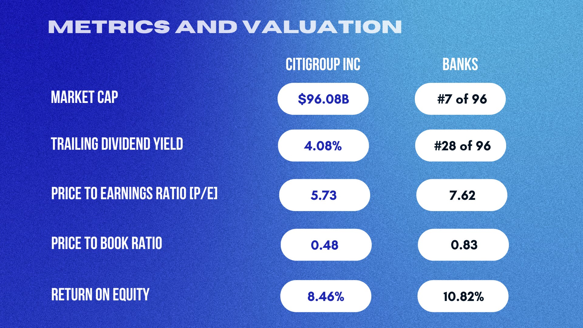 ✅ Citigroup has a Book Value of $92.95 per share implying a heavy discount from the current $50 a share price