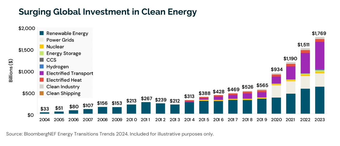 We only need to look at the extreme global adoption of clean energy with $1.7T in investments in 2023 across Renewables, Electrified Transport, Power Grids and Nuclear. The market opportunity is undeniable.