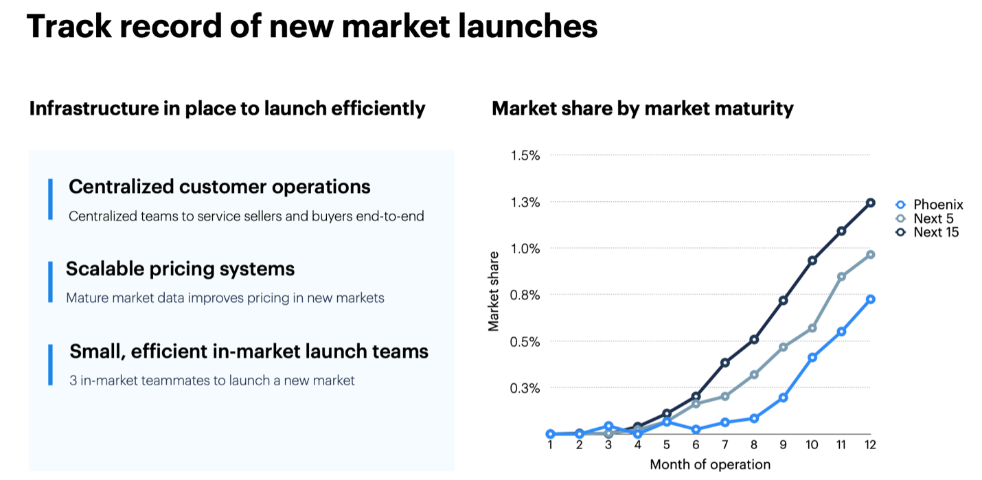 This graph gives you an idea of Opendoor's intended pace to reach 4% marketshare. Importantly, it also suggests that the velocity of Opendoor’s scaling playbook can be optimized with each incremental market launch.