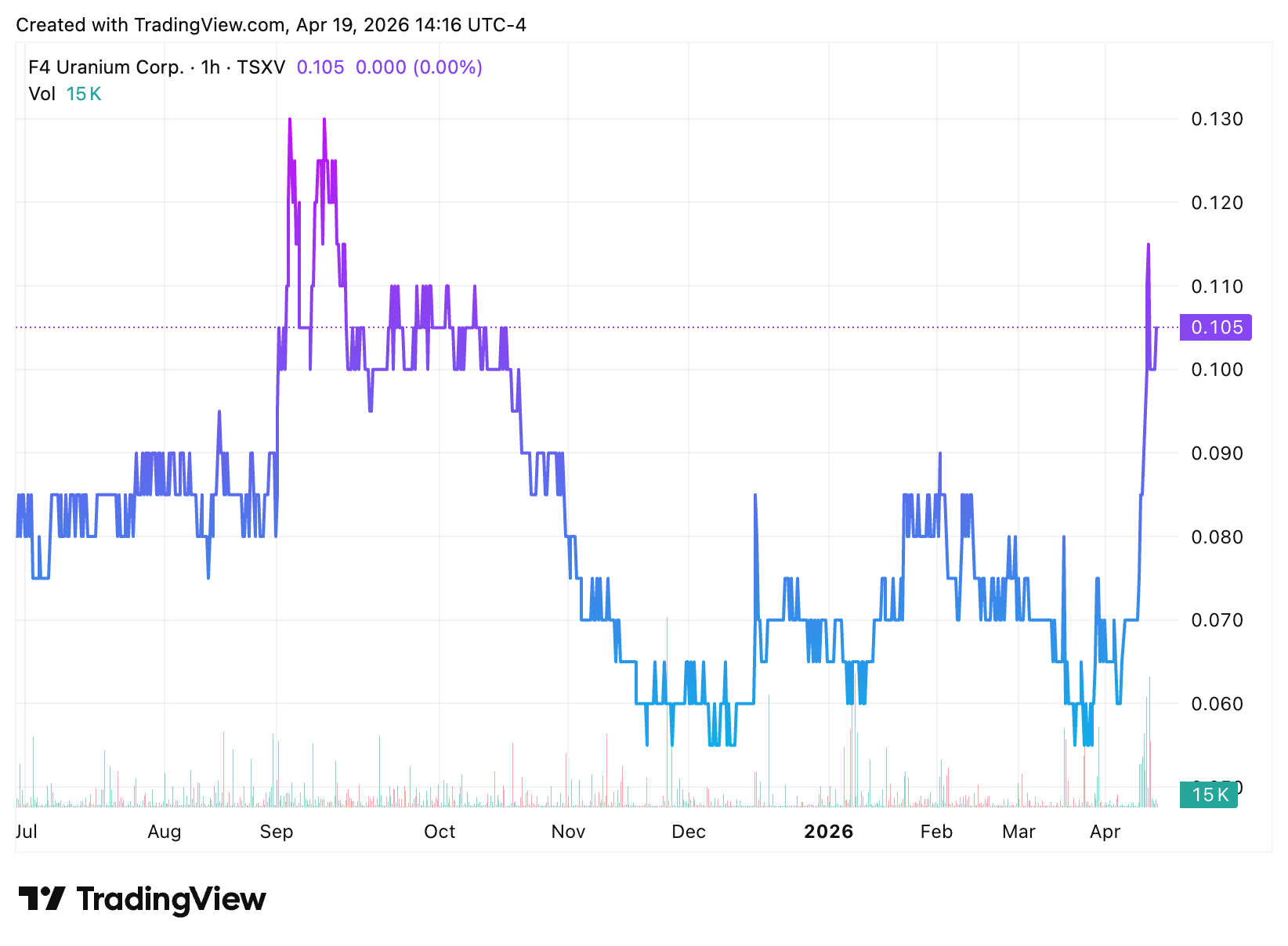 F4 Uranium (🇨🇦FFU / 🇺🇸FFUCF) is the newest vehicle from that same lineage. It trades at roughly $0.08 a share with a market cap under $10M, making it one of the smallest uranium exploration companies on the TSX Venture Exchange.