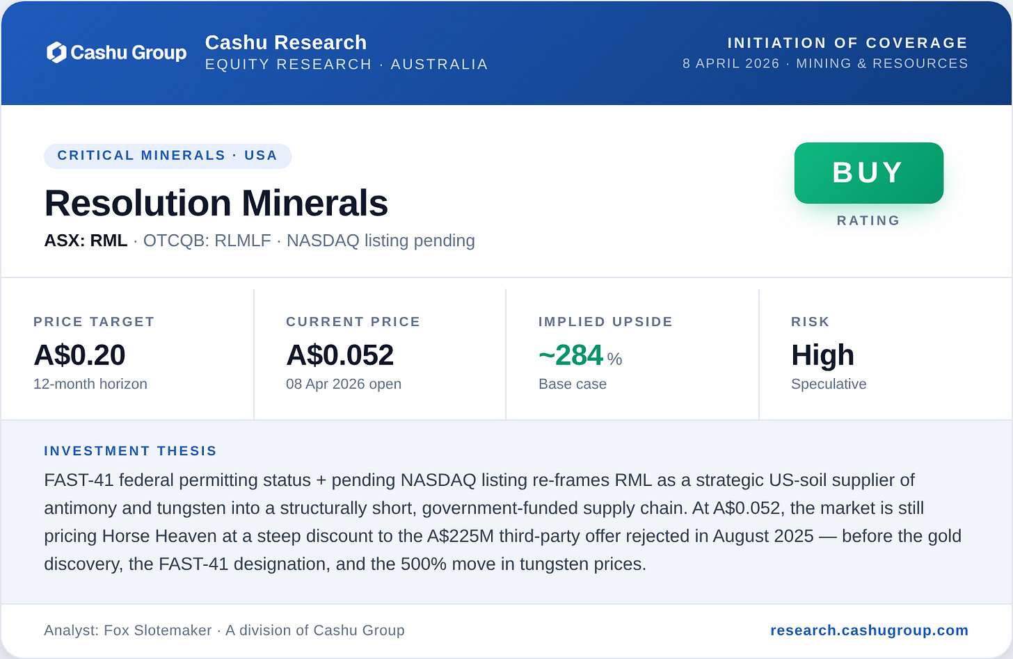 Not investment advice. Disseminated on behalf of Resolution Minerals (ASX: RML | OTCQB: RLMLF).
